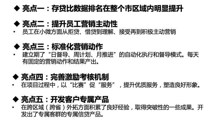 通過1天覆蓋式培訓(xùn)+現(xiàn)場流程導(dǎo)入的模式,極大的提升了該行客戶經(jīng)理條線的戰(zhàn)斗力,強化了重點崗位的整村授信理念與崗位履職意識。