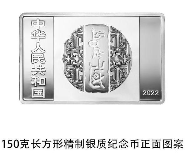 150克長方形銀質紀念幣為精制幣,含純銀150克,規(guī)格80毫米×50毫米,面額50元,成色99.9%,最大發(fā)行量5000枚。