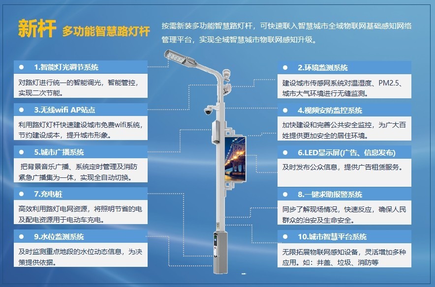 持響應國家戰(zhàn)略目標,基于自身業(yè)務特色與實踐經(jīng)驗,以科技創(chuàng)新為使命,應用物聯(lián)網(wǎng)、燈聯(lián)網(wǎng)、互聯(lián)網(wǎng)三網(wǎng)融合,以路燈燈桿為載體智慧城市物聯(lián)網(wǎng)平臺,采用新模式、新技術深度參與城市新基建,重塑新能源應用理念,助力城市實施數(shù)字化賦能降碳轉型,助力國家